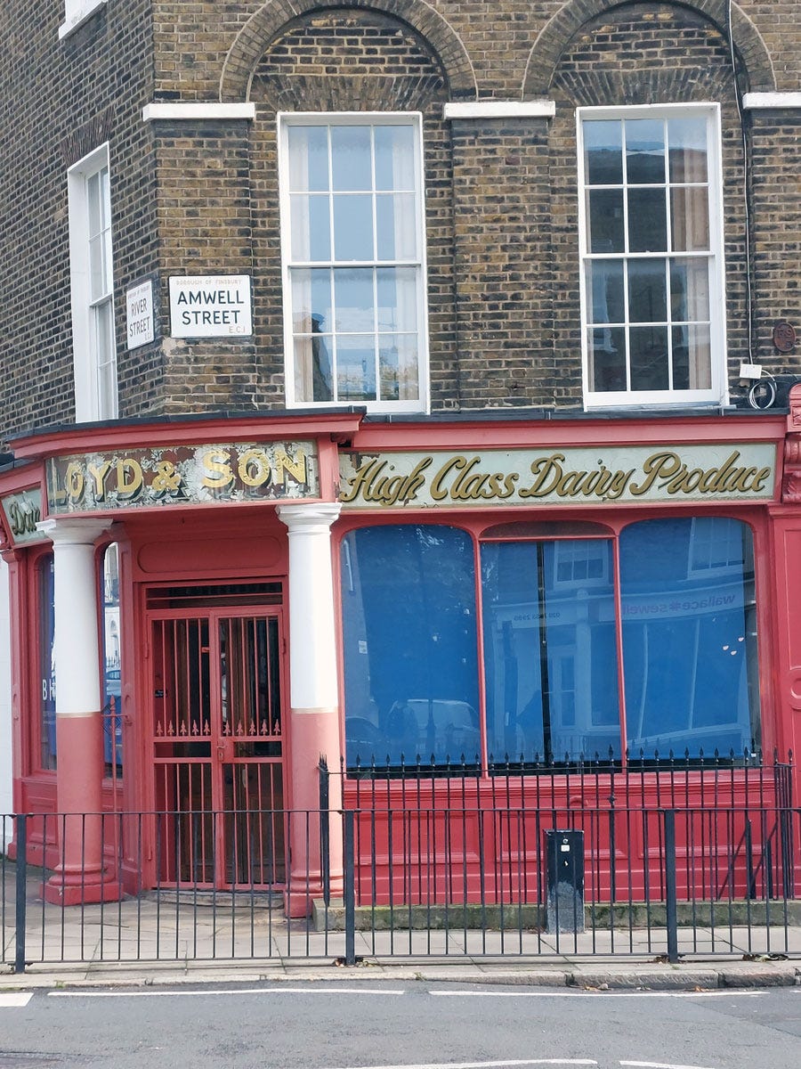We continue up to the corner of Amwell Street and Lloyd Baker Street, and I’m delighted to get to see my first original London Welsh dairy (pictured above). Thankfully, the frontage is protected meaning the pastel-pink and glass sign with gold writing is here to stay for as long as people are willing to maintain it. It reads, “Lloyd & Son. High Class Dairy Produce”. Apparently, there are a few more persevered in London – so I know where my weekends are going from now on, as I play London Welsh dairy treasure hunt.