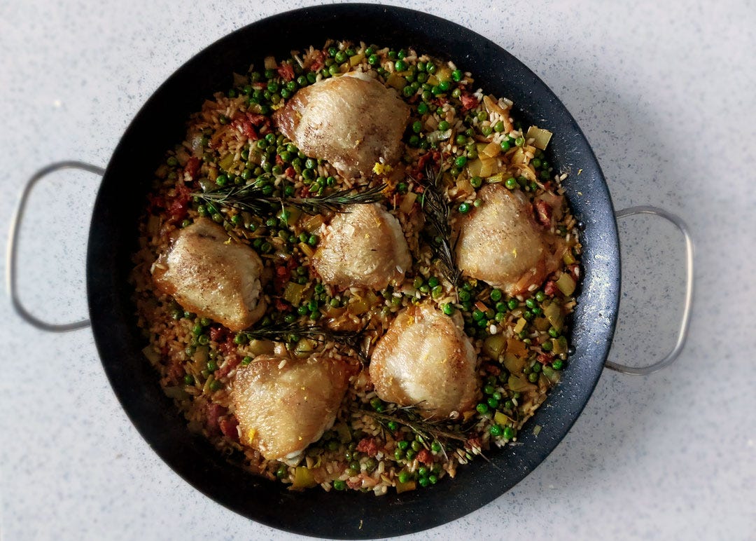 Chicken, leek and Welsh nduja rice