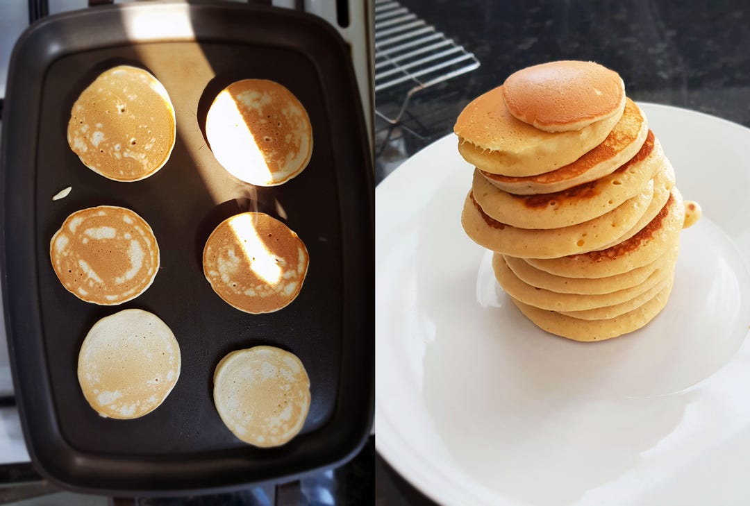 Keep in a low oven or on a warmed plate while you use up all the batter..