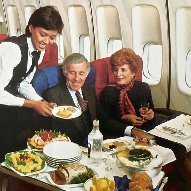 I wouldn’t mind buying a sandwich perhaps, if I could still have unlimited cups of tea in those tiny flat plastic cups. Brewing it myself in a paper cup takes all the joy – and glamour – out of it. And there is something gloriously glamorous about flying. I would have loved to have travelled on Concorde, just once, and to go back in time when whole roasts were carved at your seat, and potent martinis were de rigour (as much as I would loath the plumes of cigarette smoke).
